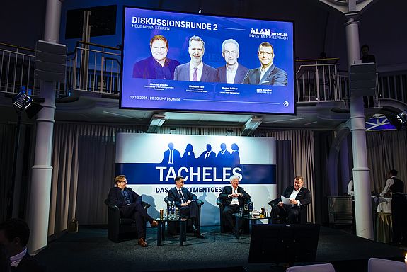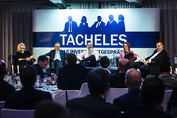 Dem Wortsinn verpflichtet, richten wir bereits seit 2010 jeweils am Vorabend des PETERSBERGER TREFFEN das Format "TACHELES - das Investmentgespräch" aus. Die Gäste erleben im Rahmen einer entspannten Atmosphäre eine Veranstaltung, die in dieser Form in der Investmentindustrie einzigartig ist. Im Steigenberger Grandhotel diskutieren die Vertreter der Fondsbranche und ihrer Verbände in eleganter Atmosphäre ungeschminkt die wichtigen Themen von Morgen mit Repräsentanten aus Politik und Medien. Die Moderation des Abends erfolgt durch DRESCHER & CIE.