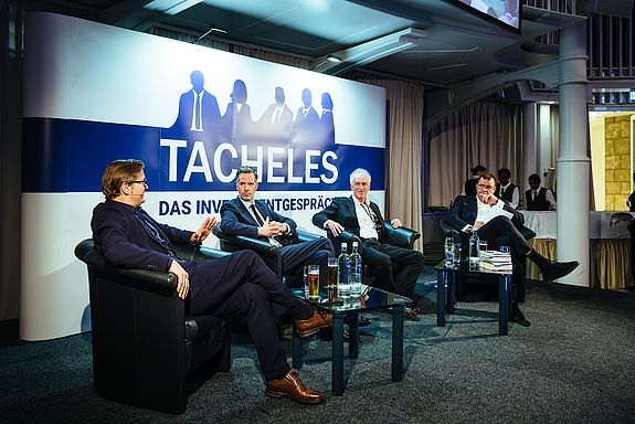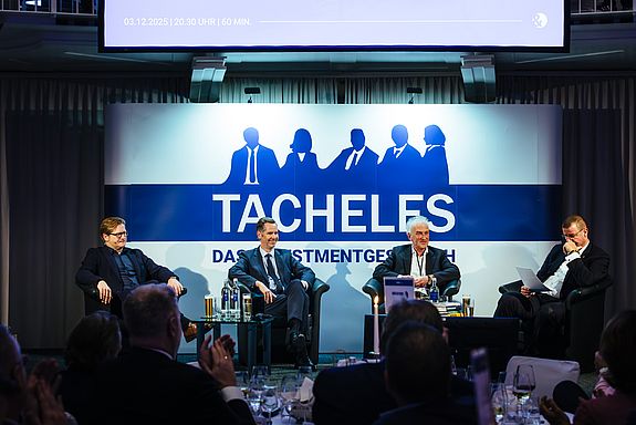 Dem Wortsinn verpflichtet, richten wir bereits seit 2010 jeweils am Vorabend des PETERSBERGER TREFFEN das Format "TACHELES - das Investmentgespräch" aus. Die Gäste erleben im Rahmen einer entspannten Atmosphäre eine Veranstaltung, die in dieser Form in der Investmentindustrie einzigartig ist. Im Steigenberger Grandhotel diskutieren die Vertreter der Fondsbranche und ihrer Verbände in eleganter Atmosphäre ungeschminkt die wichtigen Themen von Morgen mit Repräsentanten aus Politik und Medien. Die Moderation des Abends erfolgt durch DRESCHER & CIE.