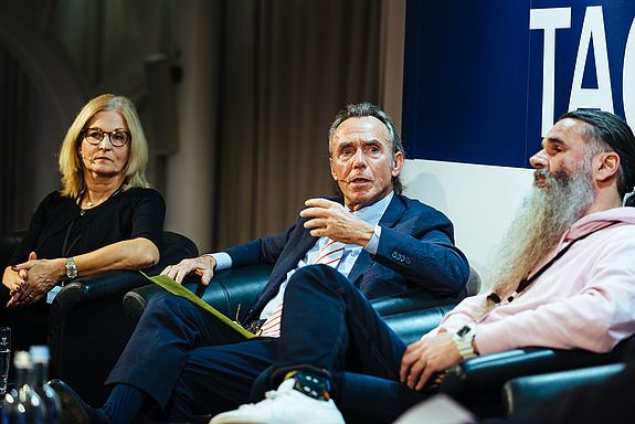 In der zweiten Diskussionsrunde versuchten sich Michael Bröcker, Chefredakteur bei Table Media, der Parteivorsitzende der FDP, Christian Dürr, und der Chefökonom von Lazard Asset Management in Deutschland, Werner Krämer, an einer ersten Leistungsbilanz der inzwischen schon gar nicht mehr so neuen Bundesregierung. Von einem ausgestellten Armutszeugnis und großen inhaltlichen und auch persönlichen Enttäuschungen gilt es aus dem Diskussionsverlauf zu berichten, von einer „Schlimmer-geht-immer-Erfahrung“ im Zuge des Regierungswechsels und einer Hassliebe innerhalb einer Schicksalsgemeinschaft, die sich „Koalition“ nennt. Ein Hauch von Weimar sei zu verspüren und ein Vergleich leider schon von daher nicht ganz abwegig, als die politische Mitte – damals wie heute – nicht bereit gewesen sei, sinnstiftende Kompromisse einzugehen, was die Ränder des Parteienspektrums erstarken ließ. – Auch Minderheitsregierungen sind in Deutschland vor diesem Hintergrund leider nicht mehr auszuschließen, und deren Erfolg ist fraglich. Lichtblicke machten die drei allein von daher aus, als es gelungen sei, die eine oder andere Empfehlung der Initiative für einen handlungsfähigen Staat in den Koalitionsvertrag zu übernehmen und an deren Umsetzung zu arbeiten. So entstand beispielsweise das neue Ministerium für Digitalisierung und Staatsmodernisierung mit einem parteilich ungebundenen Fachmann an der Spitze.